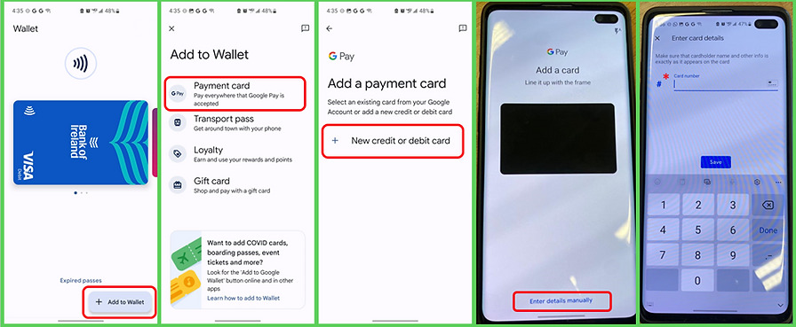 - Click ‘add card’ in the bottom left-hand corner of the wallet home screen.